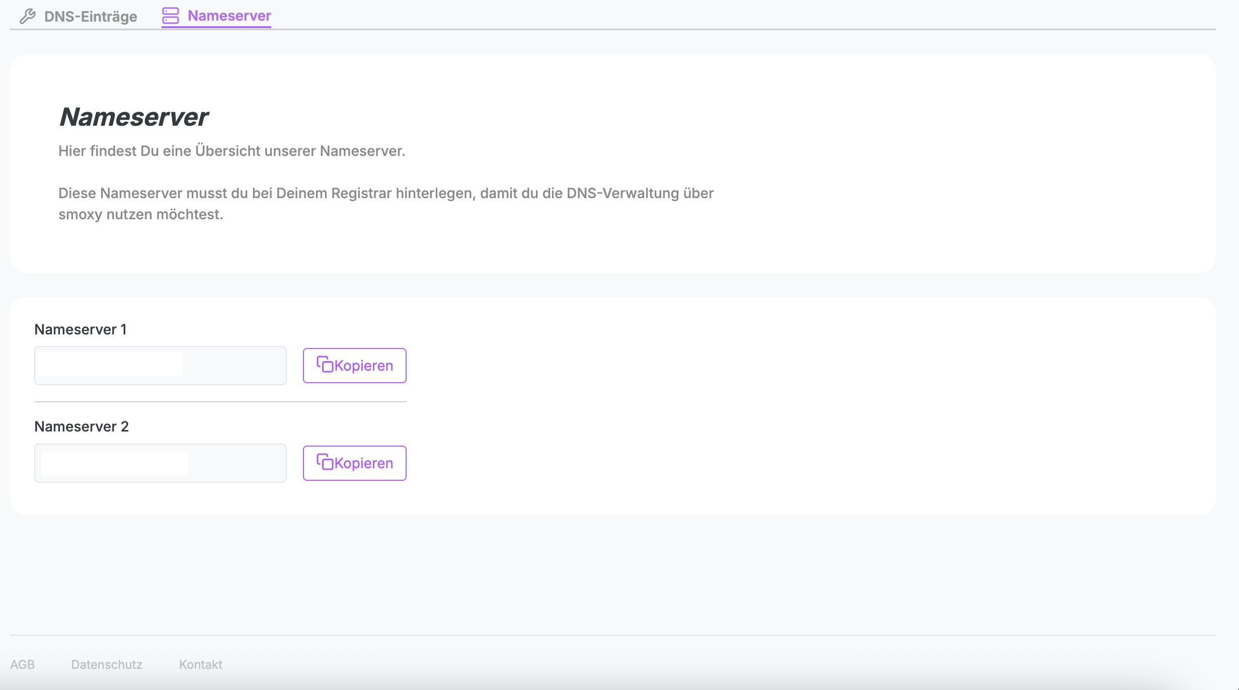 Sobald alle DNS-Einträge in smoxy importiert oder manuell eingerichtet sind, kannst du die Nameserver-Umstellung vornehmen. Dadurch wird smoxy als autoritativer DNS-Anbieter für deine Domain aktiv.